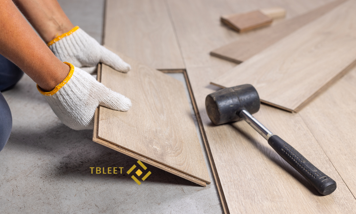 - يقوم بوضع ألواح الباركيه على المادة اللاصقة ويستخدم مطرقة لتثبيت هذه الألواح.